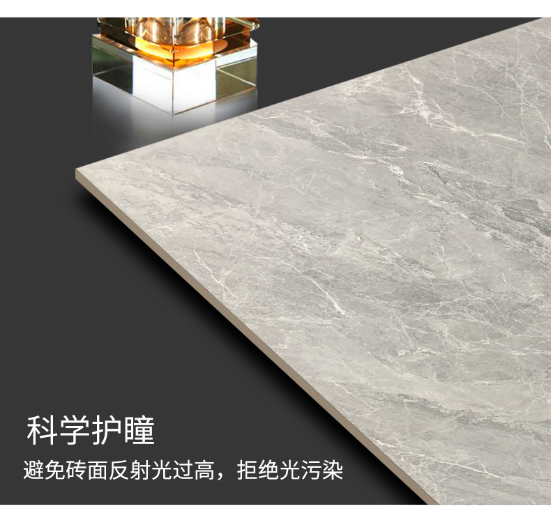 柔光瓷磚是磚面反射介于強(qiáng)光與弱光之間的一類瓷磚,其結(jié)合亮光類瓷磚的高調(diào)明艷裝飾和啞光類瓷磚的低調(diào)內(nèi)斂搭配效果,通過(guò)動(dòng)態(tài)柔光蠟拋技術(shù),降低產(chǎn)品反光率,從而達(dá)到人體舒適的視覺(jué)感受以及無(wú)光污染的空間裝飾效果。優(yōu)點(diǎn):1.視覺(jué)舒適,無(wú)光污染 2.堅(jiān)固耐磨,不易刮花.