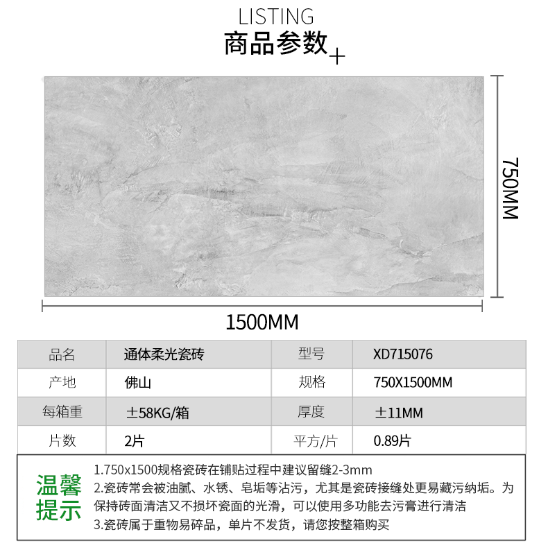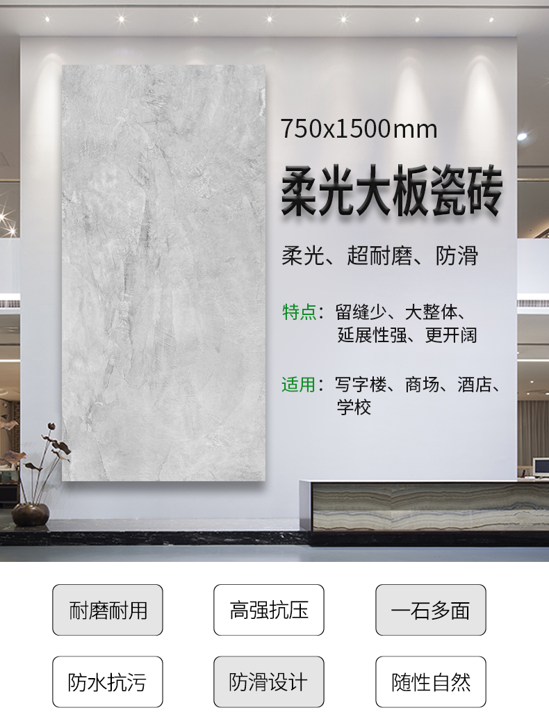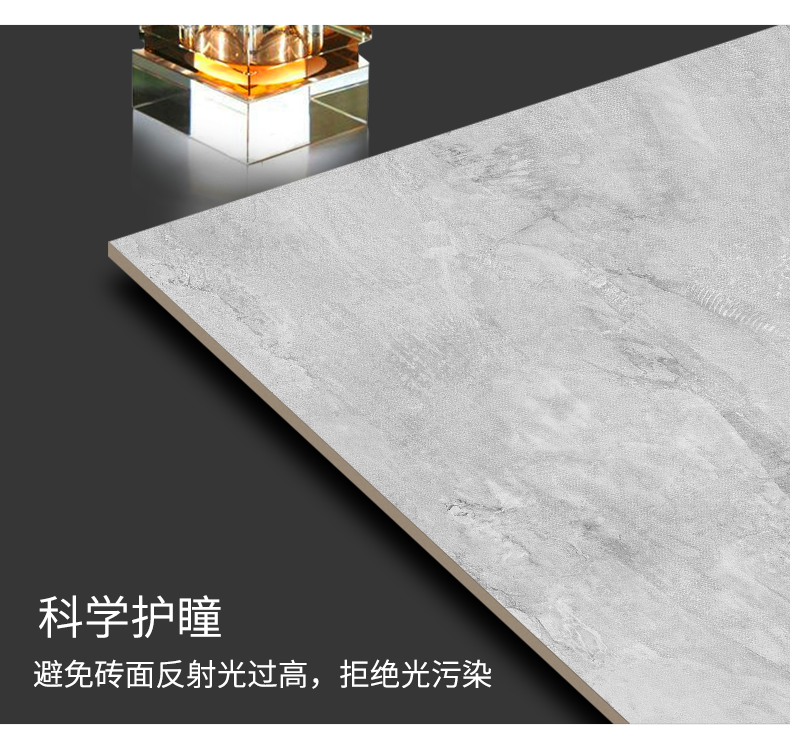 柔光瓷磚是磚面反射介于強光與弱光之間的一類瓷磚,其結(jié)合亮光類瓷磚的高調(diào)明艷裝飾和啞光類瓷磚的低調(diào)內(nèi)斂搭配效果,通過動態(tài)柔光蠟拋技術(shù),降低產(chǎn)品反光率,從而達到人體舒適的視覺感受以及無光污染的空間裝飾效果。優(yōu)點:1.視覺舒適,無光污染 2.堅固耐磨,不易刮花.