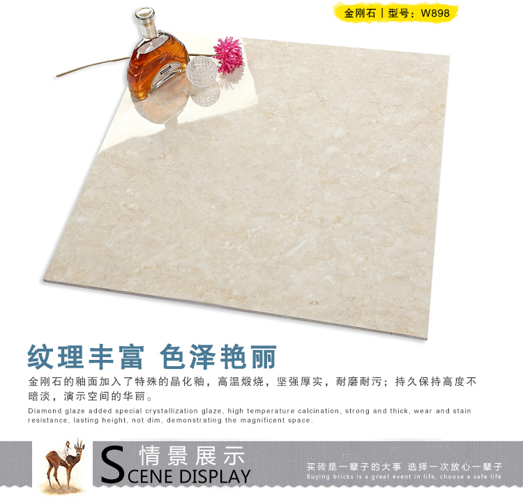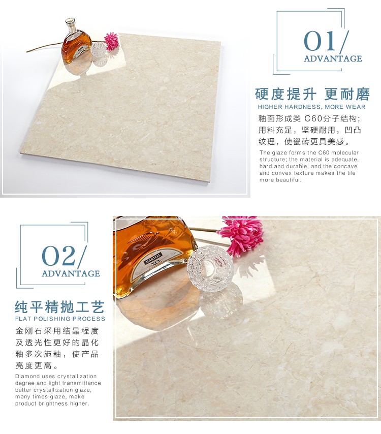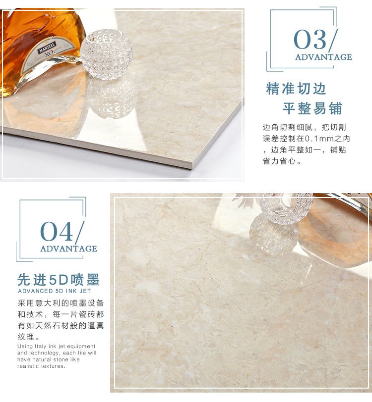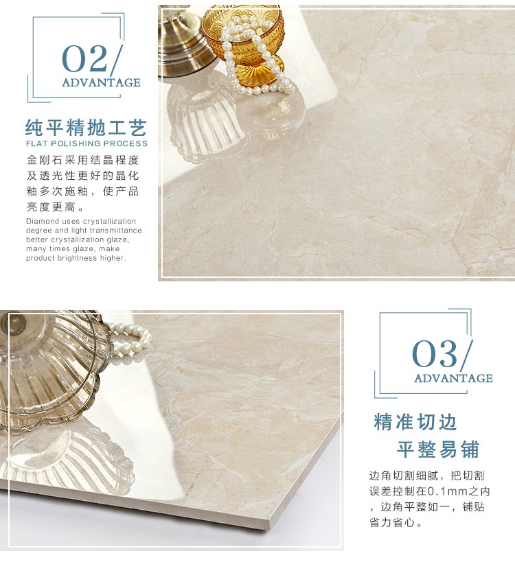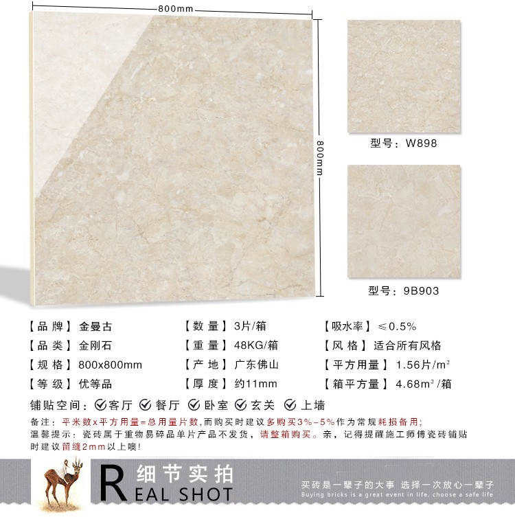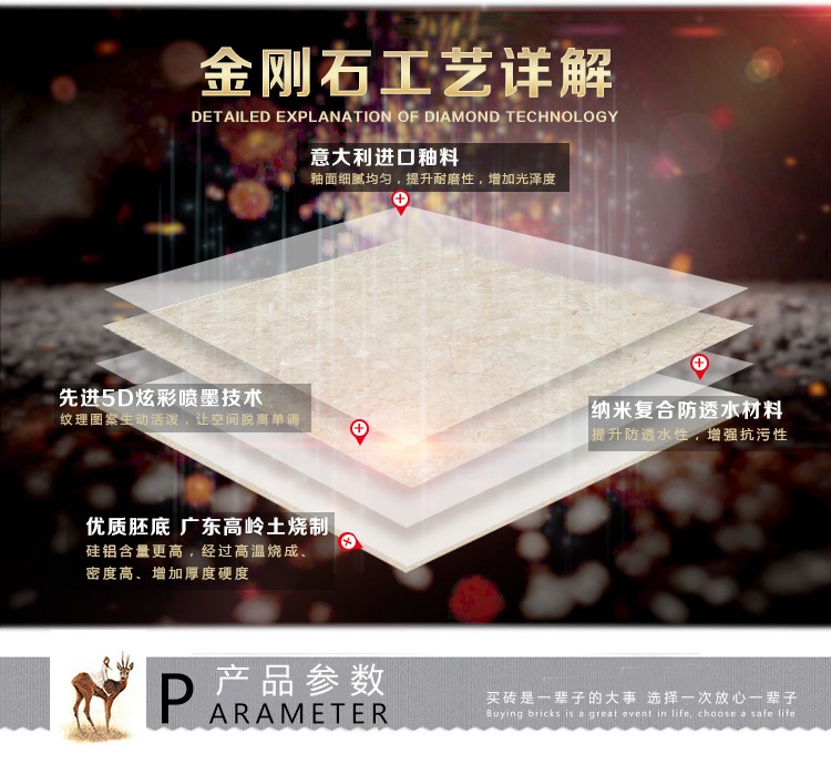 金曼古瓷磚廠家特價金剛石因高品質(zhì)而得名,是一款極具天然石材效果和微晶石質(zhì)感的仿石材瓷磚,它不但在價格、環(huán)保、耐用和清潔上極具優(yōu)勢,在質(zhì)感、規(guī)格、花色、重量等指標上,金剛石都遠遠勝于石材、拋光磚。相比其他種類的產(chǎn)品,它最大的特點可以用“高亮度、高耐磨、高平整、高逼真、高清晰、高環(huán)保”。