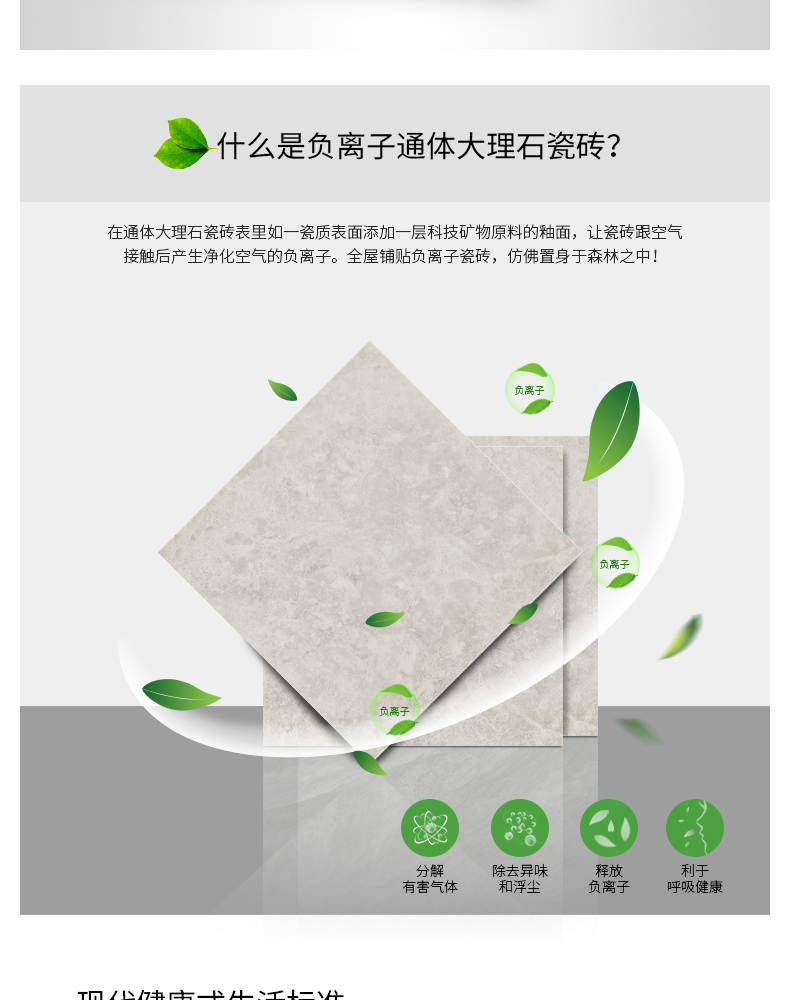 金曼古負(fù)離子瓷磚,能持續(xù)產(chǎn)生負(fù)離子,提高居室內(nèi)空氣負(fù)離子濃度,改善室內(nèi)空氣質(zhì)量,提升人體健康水平。負(fù)離子被稱為空氣維生素,負(fù)離子瓷磚創(chuàng)造安全健康的空間環(huán)境。工程用磚全拋釉地磚、通體大理石瓷磚、金剛石地磚等支持加工定做家裝瓷磚批發(fā)。