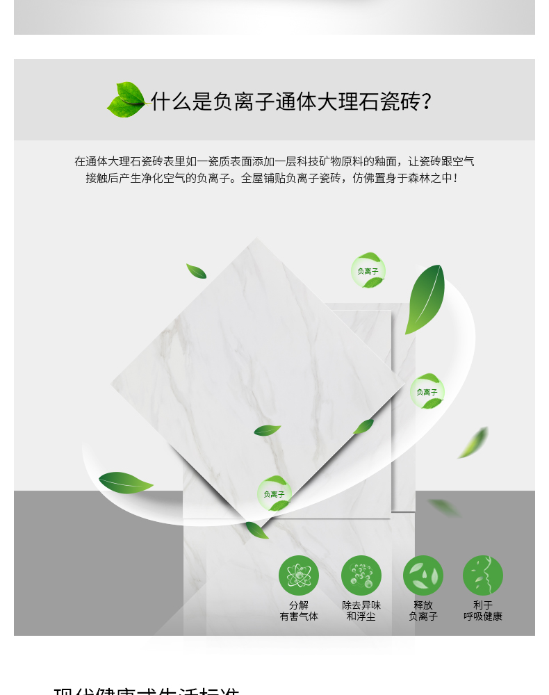 金曼古負(fù)離子瓷磚,能持續(xù)產(chǎn)生負(fù)離子,提高居室內(nèi)空氣負(fù)離子濃度,改善室內(nèi)空氣質(zhì)量,提升人體健康水平。負(fù)離子被稱為空氣維生素,負(fù)離子瓷磚創(chuàng)造安全健康的空間環(huán)境。工程用磚全拋釉地磚、通體大理石瓷磚、金剛石地磚等支持加工定做家裝瓷磚批發(fā)。