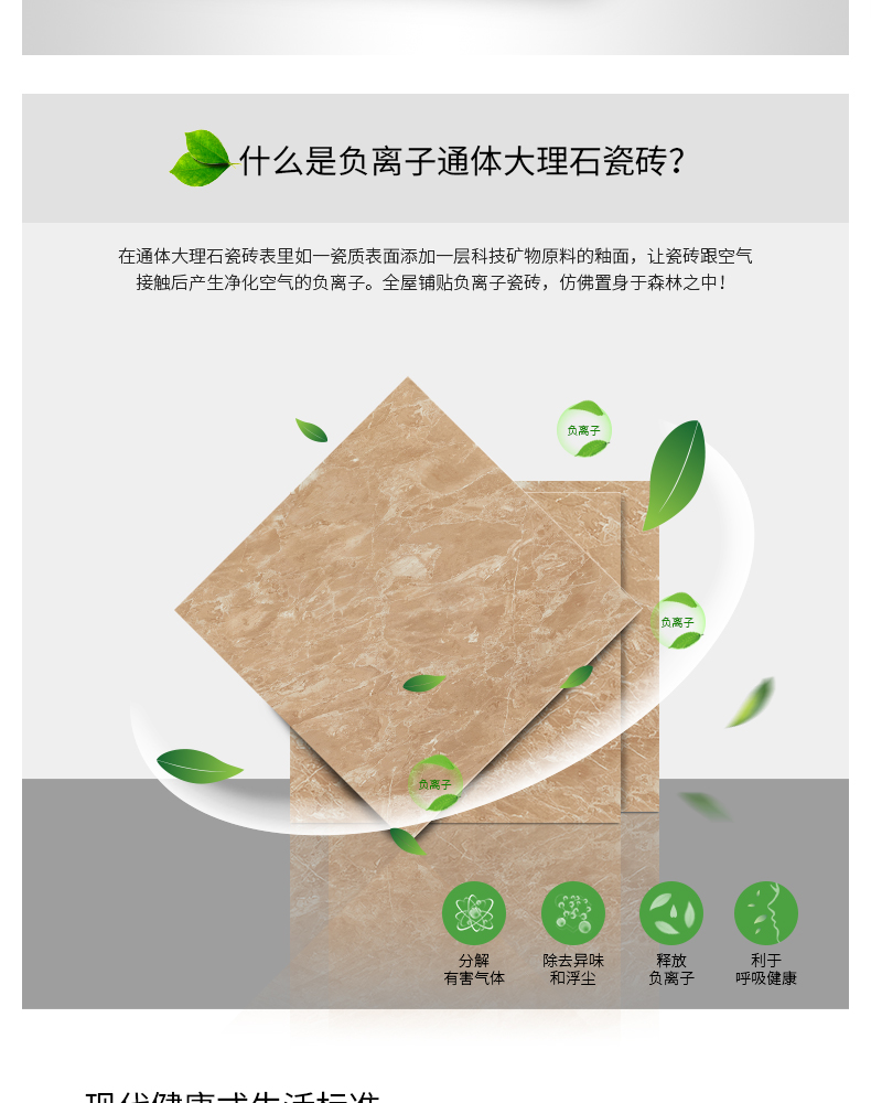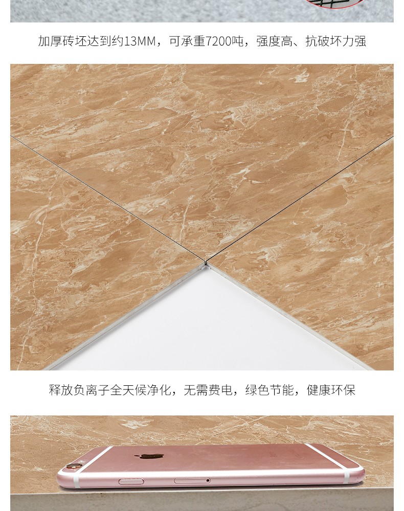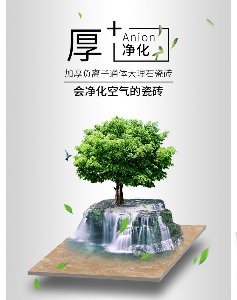 金曼古負(fù)離子瓷磚,能持續(xù)產(chǎn)生負(fù)離子,提高居室內(nèi)空氣負(fù)離子濃度,改善室內(nèi)空氣質(zhì)量,提升人體健康水平。負(fù)離子被稱(chēng)為空氣維生素,負(fù)離子瓷磚創(chuàng)造安全健康的空間環(huán)境。工程用磚全拋釉地磚、通體大理石瓷磚、金剛石地磚等支持加工定做家裝瓷磚批發(fā)。