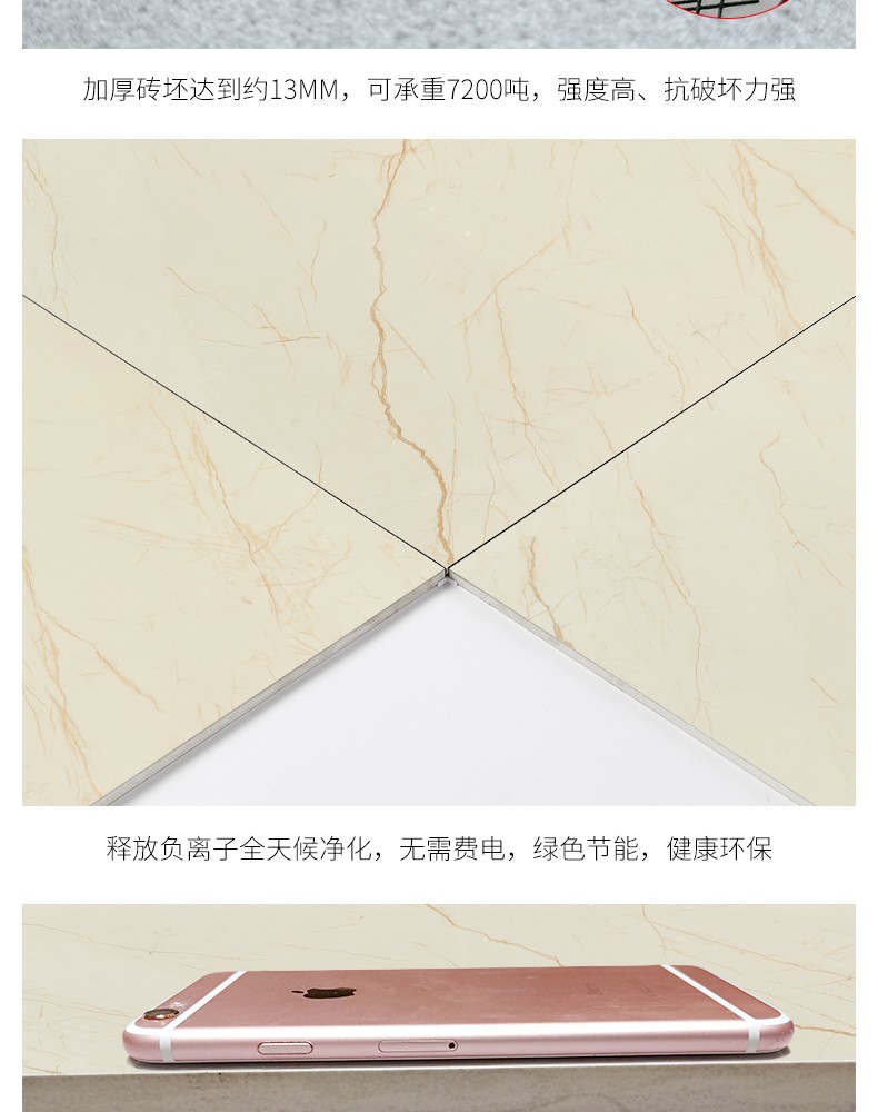 金曼古負離子瓷磚,能持續(xù)產生負離子,提高居室內空氣負離子濃度,改善室內空氣質量,提升人體健康水平。負離子被稱為空氣維生素,負離子瓷磚創(chuàng)造安全健康的空間環(huán)境。工程用磚全拋釉地磚、通體大理石瓷磚、金剛石地磚等支持加工定做家裝瓷磚批發(fā)。