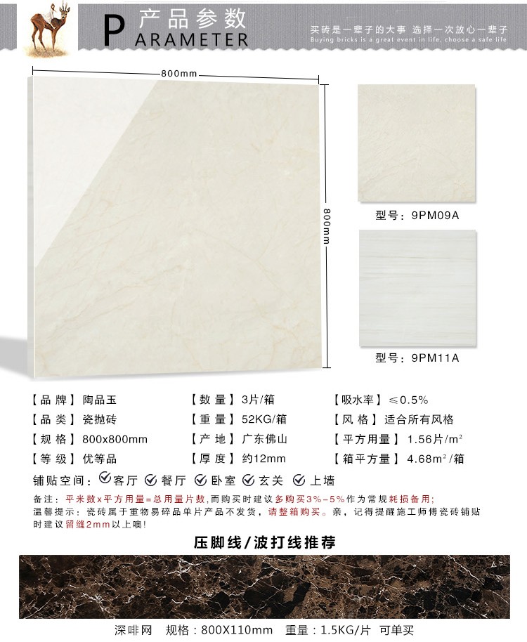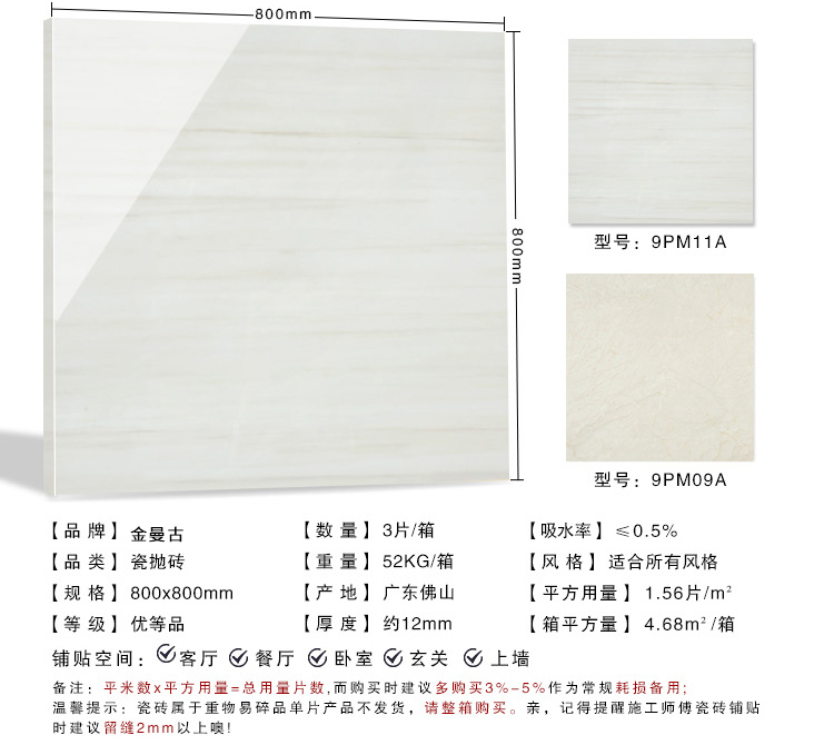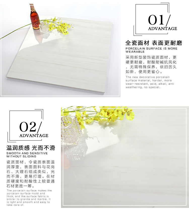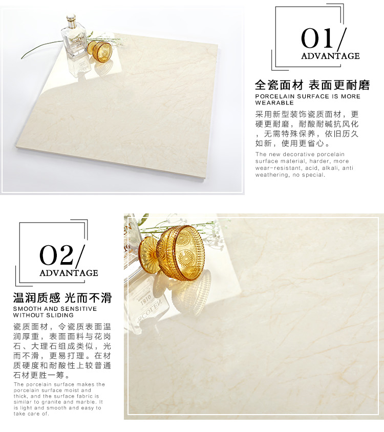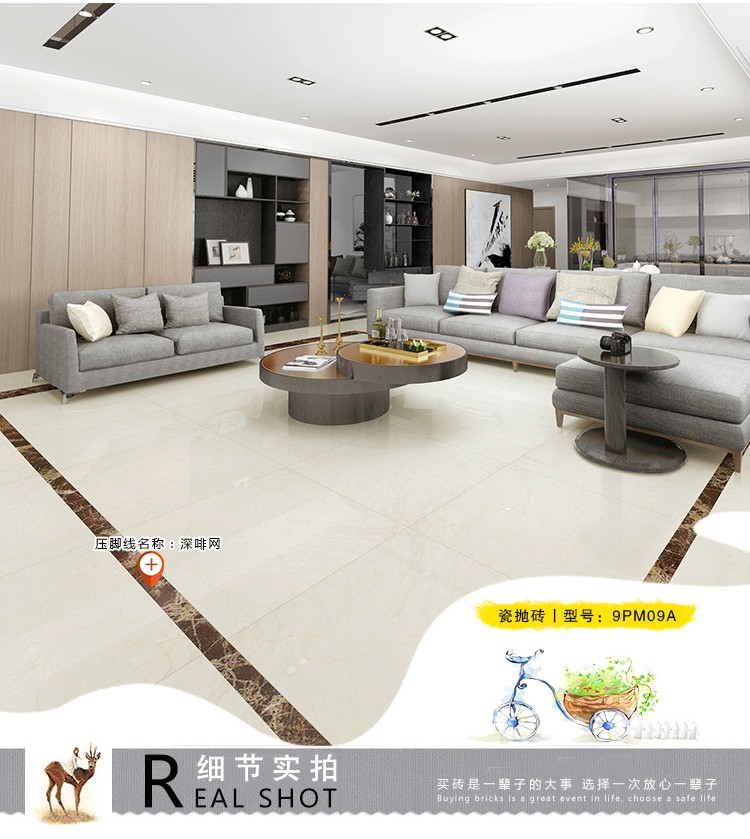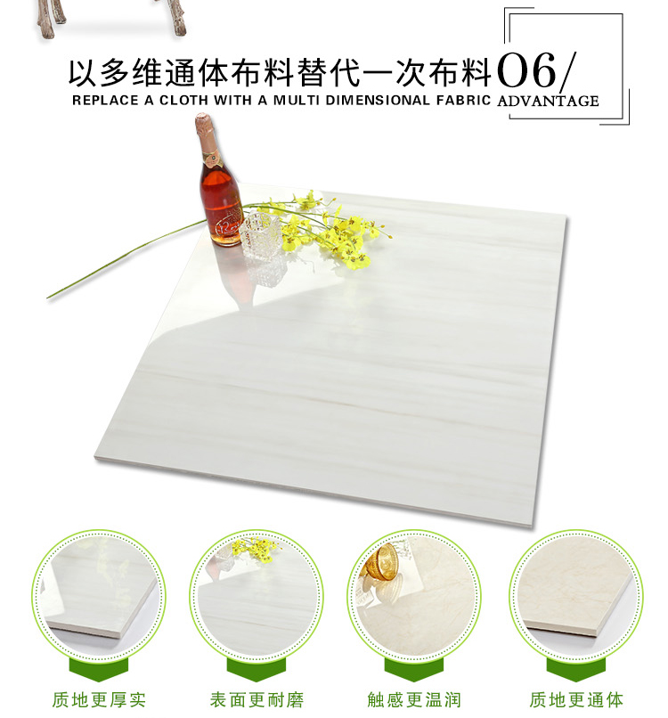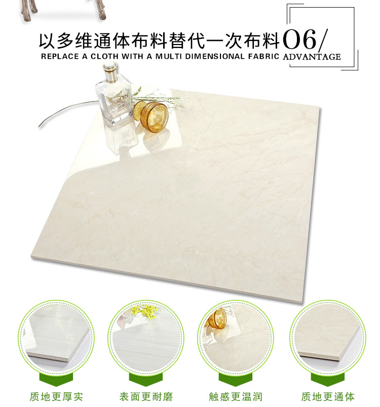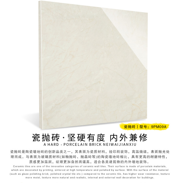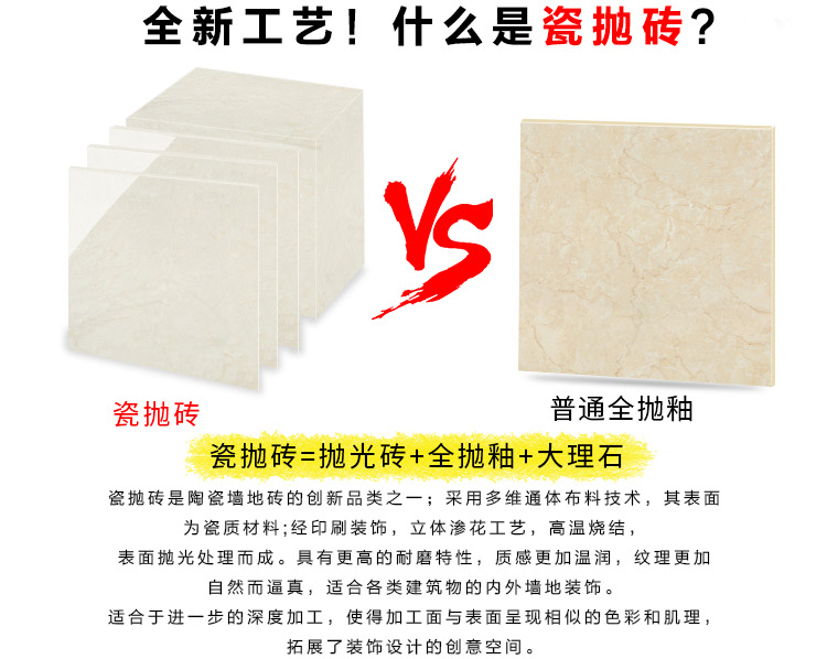 瓷拋磚,是陶瓷墻地磚的創(chuàng)新品類之一,其表面為瓷質(zhì)材料,經(jīng)印刷裝飾,高溫?zé)Y(jié),表面拋光處理而成。與表面為玻璃質(zhì)材料的陶瓷墻地磚相比,具有更高的耐磨特性,質(zhì)感更加溫潤(rùn),紋理更加自然而逼真,適合各類建筑物的內(nèi)外墻地裝飾。