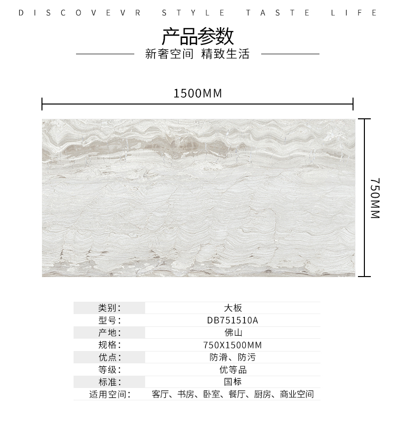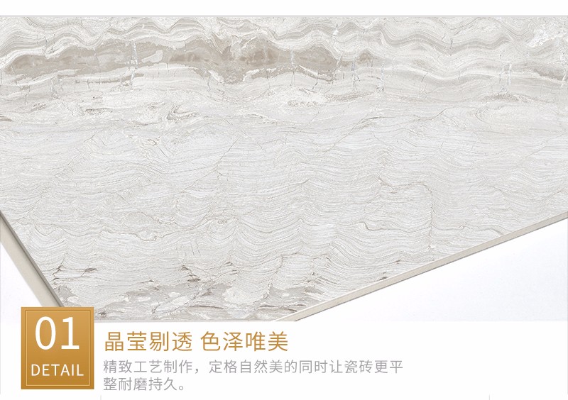 大規(guī)格瓷磚(DB751510A)-工程瓷磚 金曼古大規(guī)格瓷磚引進世界最先進的超大型壓機自動壓制而成,具有超大規(guī)格,超高硬度,超高致密度,超長時間煅燒,超低吸水率,超高光澤度。其磚面紋理流暢自然,效果逼真,適用于大型工程外墻干掛和酒店、商場、各辦公樓大堂等地面裝修