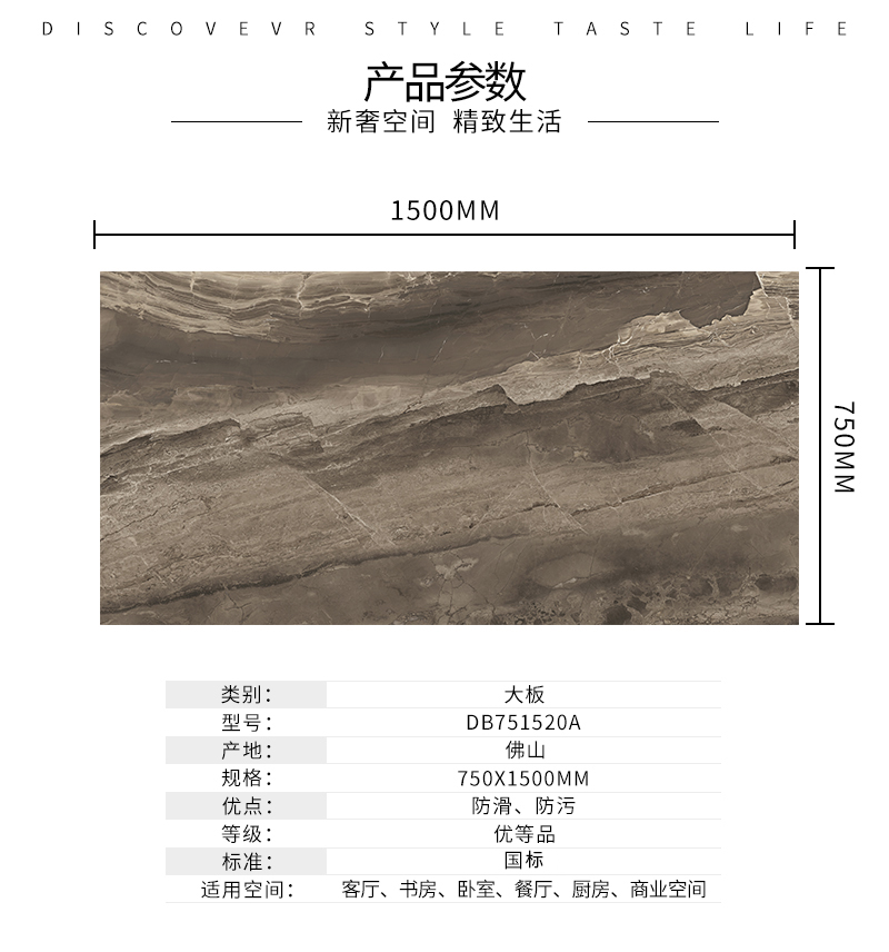 大規(guī)格瓷磚(DB751520A)-工程瓷磚 金曼古大規(guī)格瓷磚引進(jìn)世界最先進(jìn)的超大型壓機(jī)自動(dòng)壓制而成,具有超大規(guī)格,超高硬度,超高致密度,超長(zhǎng)時(shí)間煅燒,超低吸水率,超高光澤度。其磚面紋理流暢自然,效果逼真,適用于大型工程外墻干掛和酒店、商場(chǎng)、各辦公樓大堂等地面裝修